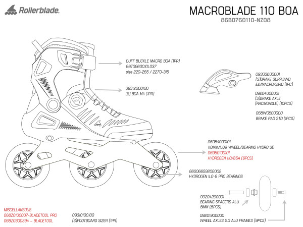 | Click here to view the Rollerblade Macroblade 110 BOA parts list. | |