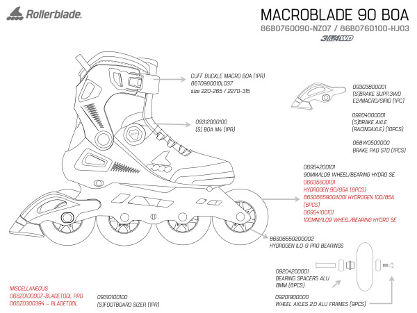 | Click here to view the Rollerblade Macroblade 90 BOA parts list. | |
